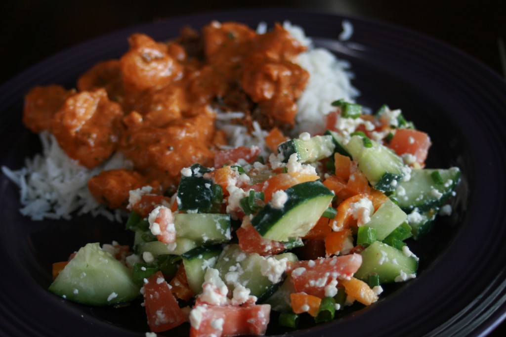 I think you need to spend another 10-15 minutes and post up a recipe for that (Indian?) chicken and vegetable salad for us! Haha, it looks so good.