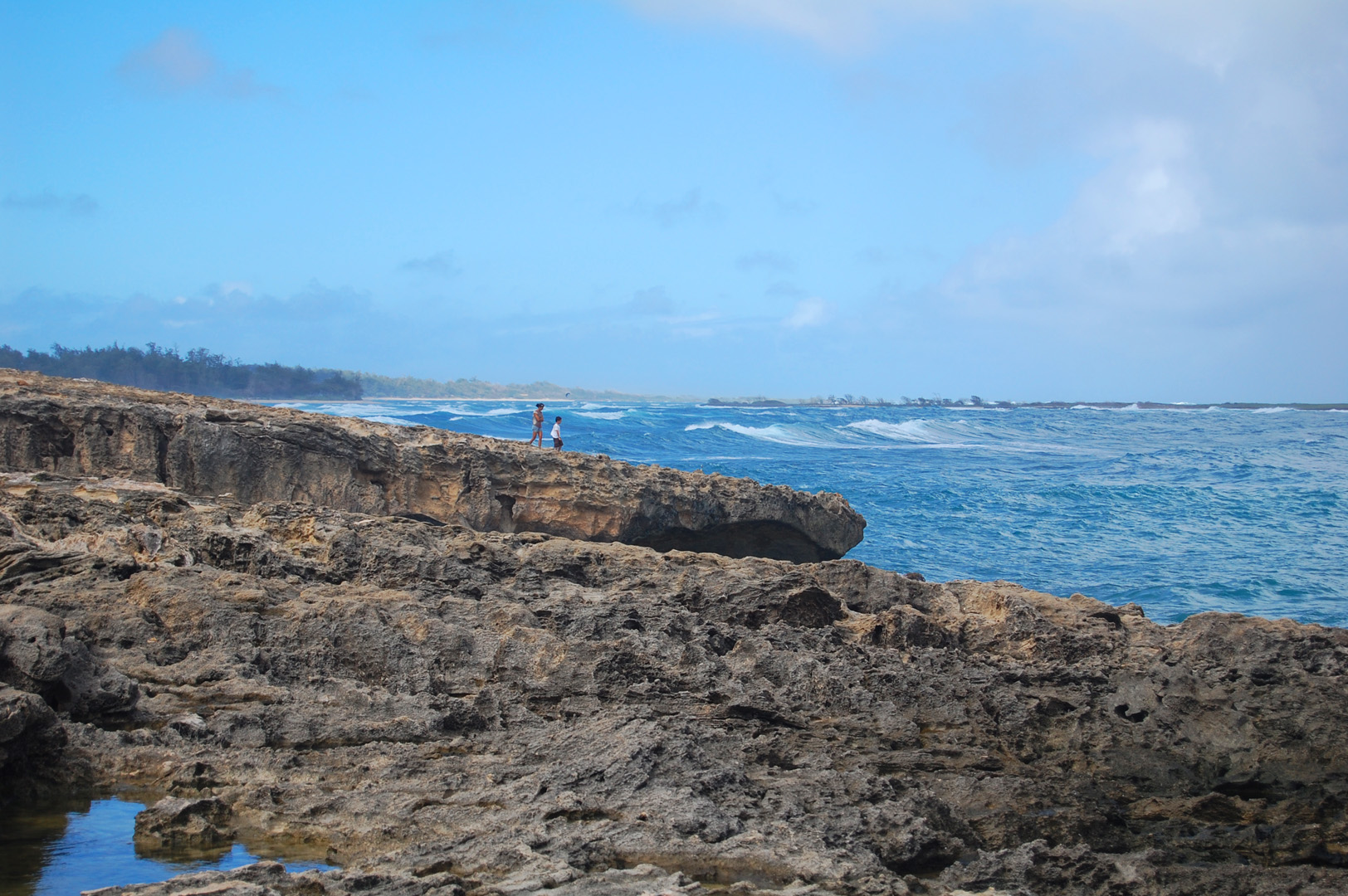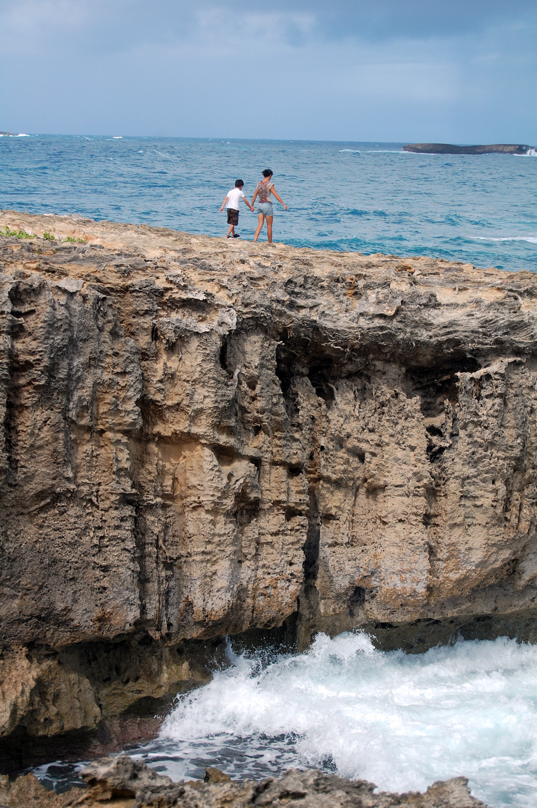Mrs. and Little MM walking out to a scary peninsula.
