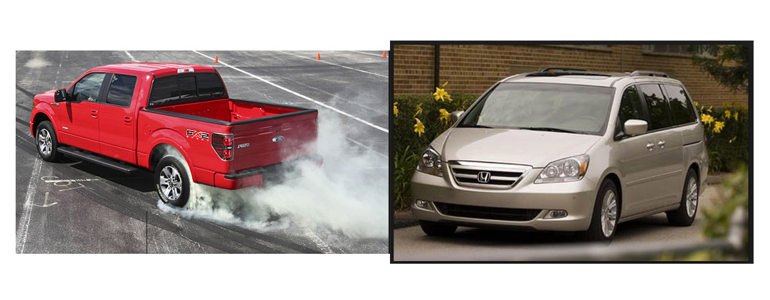 • Average cars (2 –one 2006 Honda Odyssey mini van and one…wait for it…2011 Ford F-150 Eco-boost Extended cab truck)you saw that coming from a mile away didn’t