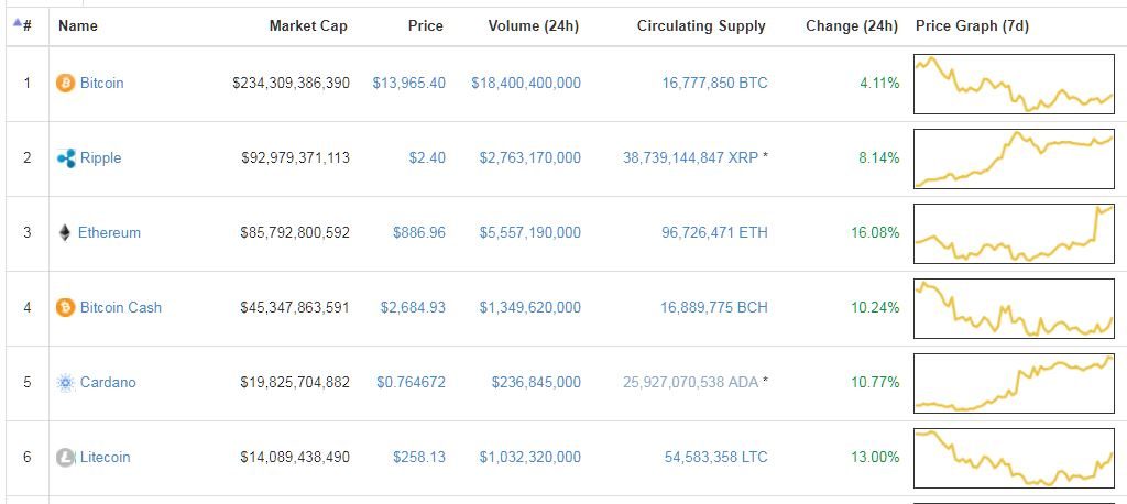 “Holy Shit!” is the only reasonable reaction. You’ve got Bitcoin with a market value of $234 Billion Dollars, then Ripple at $92 billion with Ethereum right behind at $85,792,800,592.